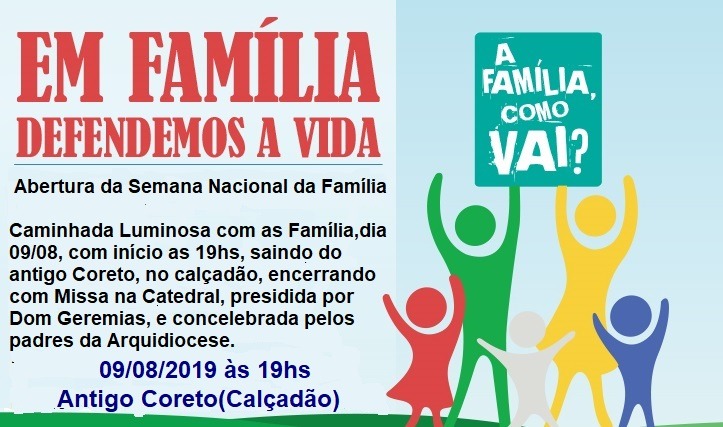No mês de agosto celebramos a Semana Nacional da Família, de 9 a 18 de agosto.
