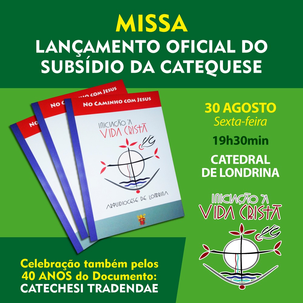 A Animação Bíblico-Catequética da Arquidiocese de Londrina convida os catequistas e catequizandos para a missa de lançamento oficial do subsídio da catequese, na sexta-feira, 30 de agosto, às 19:30 na Catedral Metropolitana, presidida pelo arcebispo dom Geremias Steinmetz.