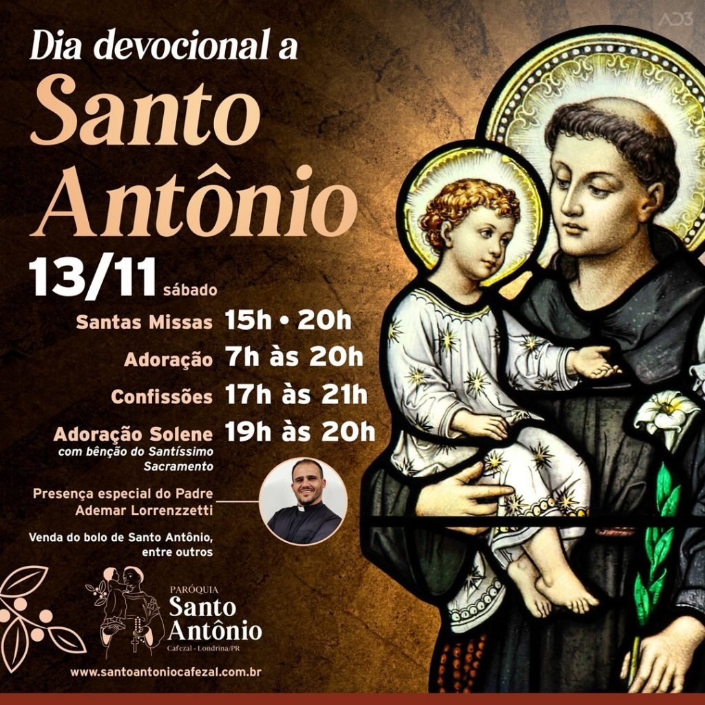 No próximo sábado (13/11), a Paróquia Santo Antônio no Cafezal promove o Dia Devocional a Santo Antônio do mês de novembro. Serão dois horários de missa para que os fiéis possam rezar e expressar seu carinho e devoção a Santo Antônio: às 15h e às 20h.