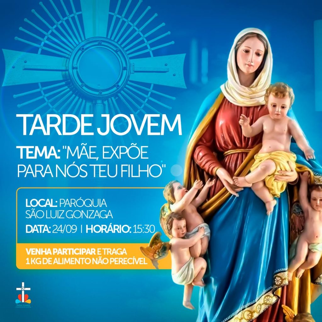 A juventude do Decanato Leste realizará no próximo sábado, 24/9, às 15h30 na Paróquia São Luiz Gonzaga uma TARDE JOVEM. Um encontro de profunda espiritualidade a partir da alegria do seguimento da pessoa de Jesus, nosso Senhor.