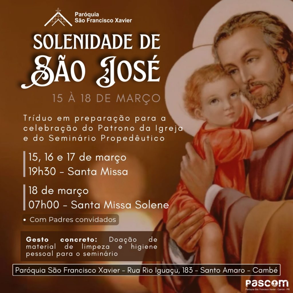 De 15 a 17 de março, a Paróquia São Francisco Xavier, de Cambé, celebra o tríduo em preparação para a celebração do Patrono da Igreja e do Seminário Propedêutico São José.