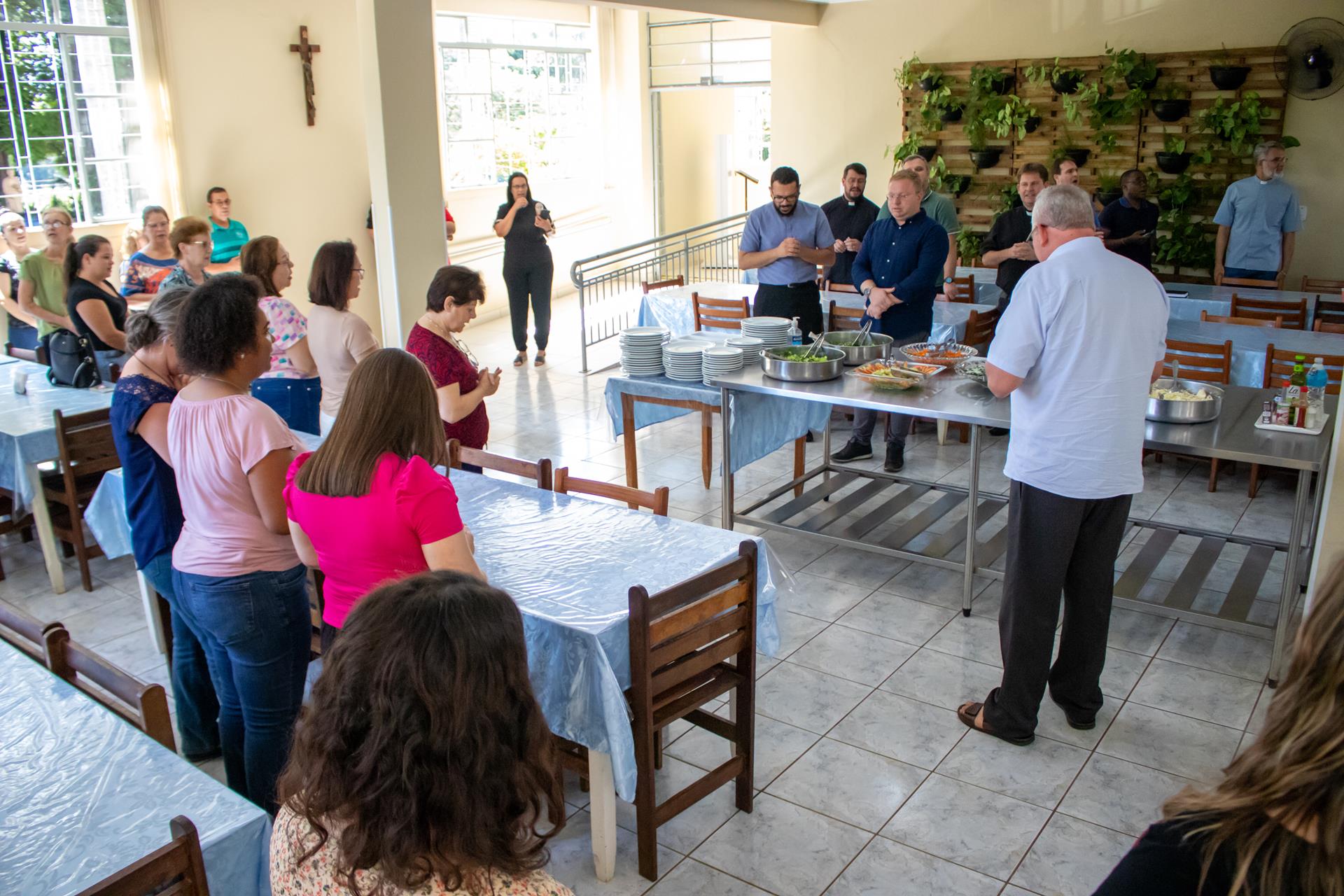 No almoço, os profissionais se uniram ao arcebispo dom Geremias Steinnmetz e aos padres com até cinco anos de ministérios, que tiveram uma reunião no centro de espiritualidade. A missa de encerramento do encontro foi presidida pelo padre Reinaldo e concelebrada pelo padre Alexandre Alves Filho, coordenador da Ação Evangelizadora.