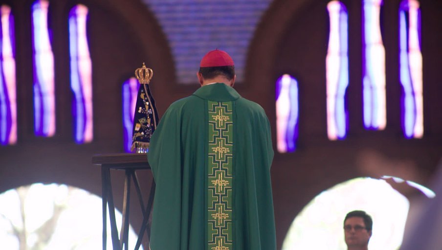 Ao entardecer, os catequistas saíram em procissão em direção à Basílica, meditando o Santo Terço. A cada mistério contemplado, uma região do Brasil acendia sua vela, iluminando o caminho. Na Basílica, o dia encerrou com a Santa Missa.