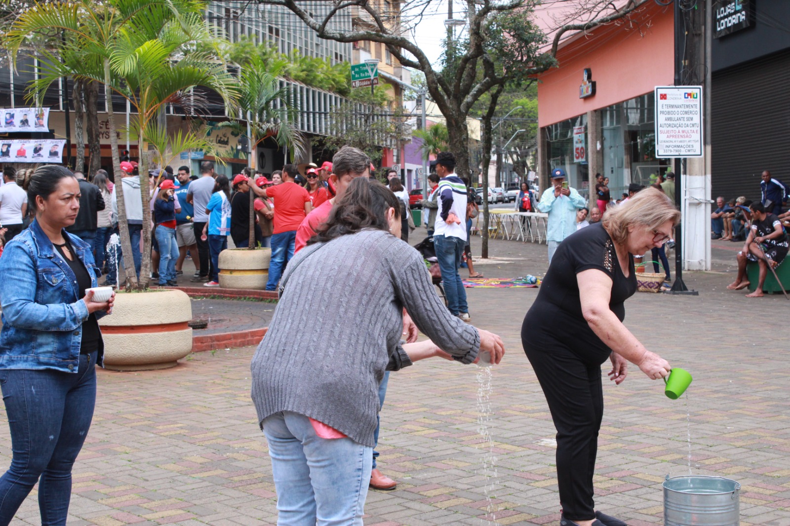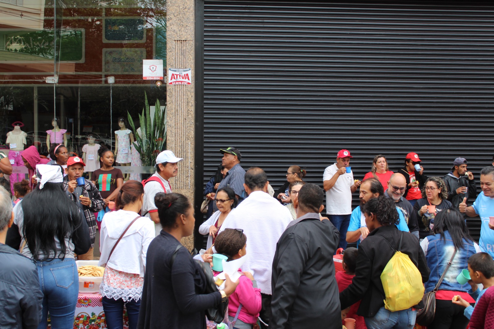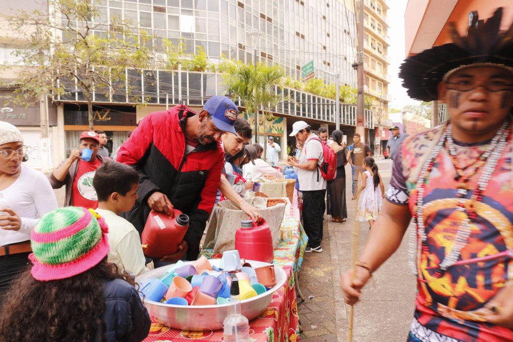 Um café da manhã partilhado recepcionou os participantes. Em seguida, junto à memória histórica das celebrações dos anos anteriores, pessoas entraram com tigelas de arroz e canecas de água, depositadas em panela e bacia, dinamizadas por trabalhadores e mães de luta por justiça e moradores da ocupação Flores da Campo.