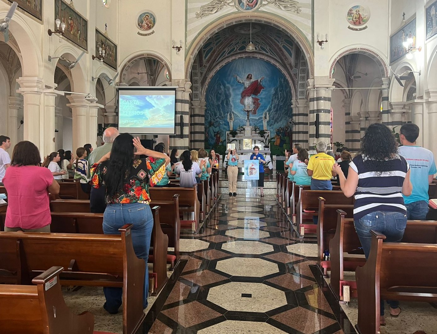 Cerca de 50 leigos do Decanato de Porecatu se reuniram, no dia 16 de setembro, na Paróquia São João Batista de Florestópolis, para uma tarde de formação bíblico-missionária. O encontro iniciou com o estudo da Carta de São Paulo aos Efésios, texto escolhido para o aprofundamento neste ano no Mês da Bíblia, com o tema: “Vestir-se da nova humanidade” (cf. Ef 4,24).