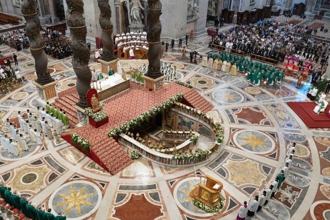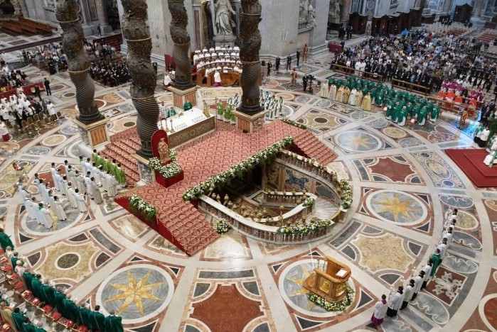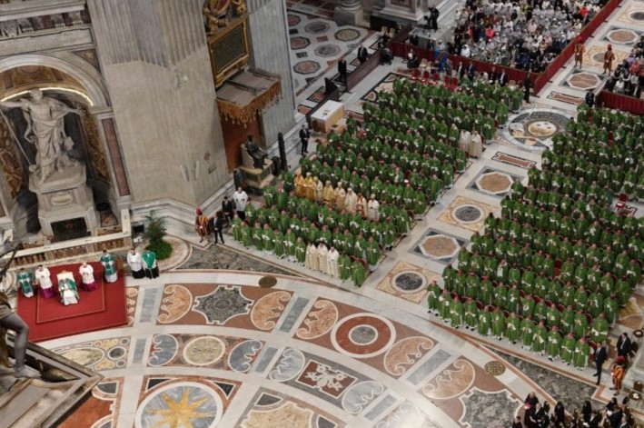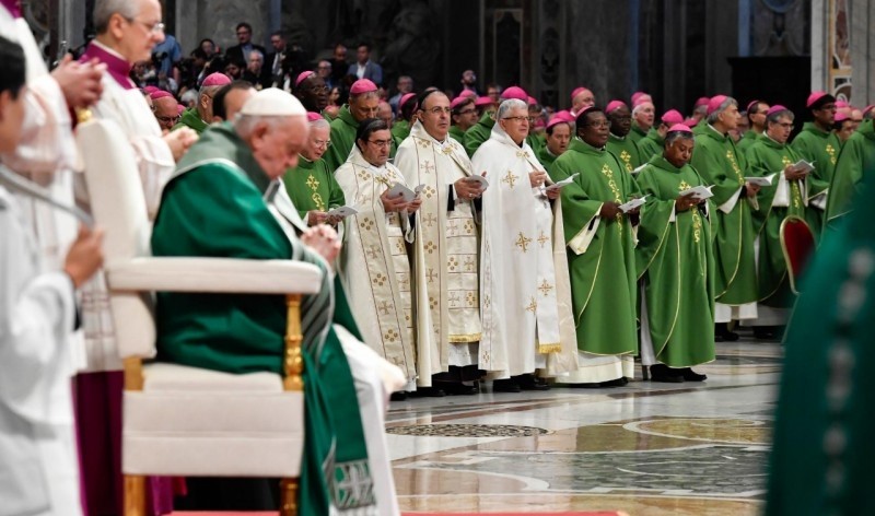 O Papa Francisco presidiu a celebração eucarística de conclusão do Sínodo dos Bispos no Vaticano no domingo, 29 de outubro, e exortou cardeais, bispos, sacerdotes, religiosos e leigos a crescer na adoração a Deus e no serviço ao próximo: “é aqui que está o coração de tudo” para fazer “a Igreja que somos chamados a sonhar: uma Igreja serva de todos, serva dos últimos. Uma Igreja que acolhe, serve, ama. Uma Igreja com as portas abertas, que seja porto de misericórdia”.