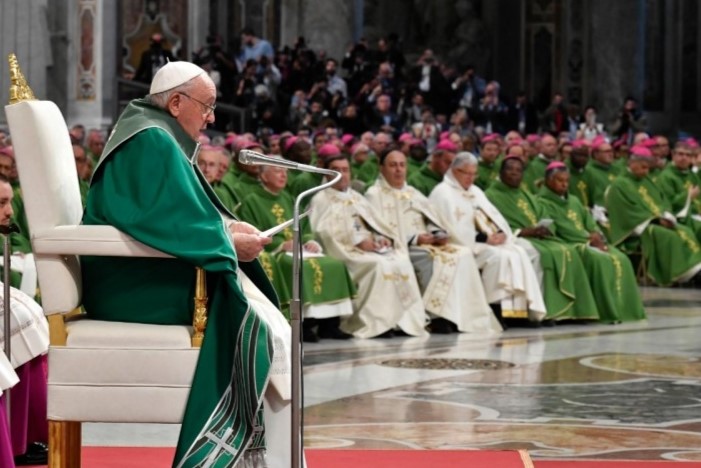 Cerca de 5 mil fiéis estiveram na Basílica São Pedro para rezar com o Papa Francisco. A homilia foi especialmente dirigida aos cardeais, bispos, sacerdotes, religiosos e leigos que, durante um mês, se viram empenhados na Sala Paulo VI, no Vaticano, para a XVI Assembleia Geral Ordinária. O pedido do Pontífice, segundo a reflexão do Evangelho do dia (Mt 22, 36) sobre “o princípio inspirador de tudo”, foi de “crescer na adoração a Deus e no serviço do próximo”.