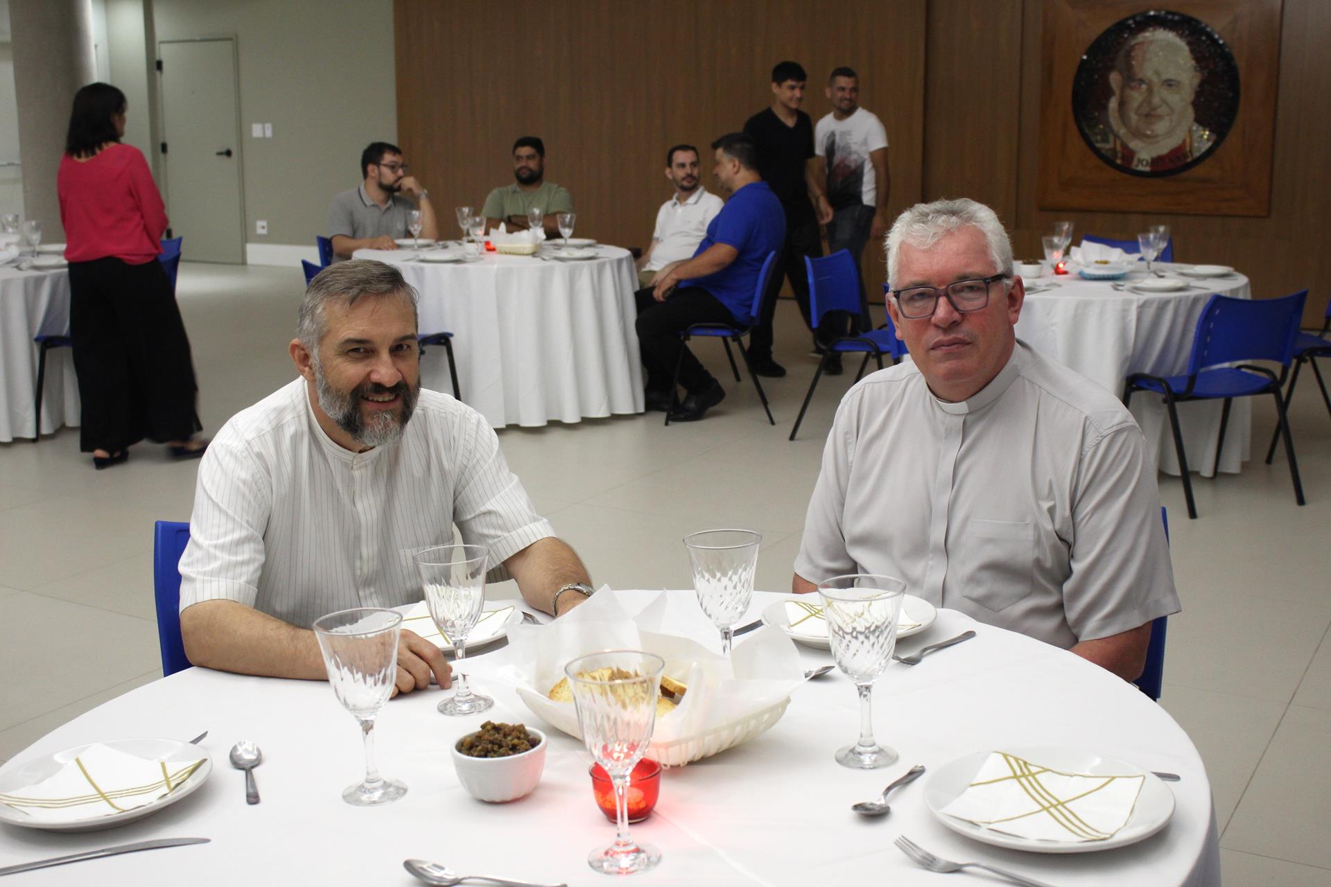 Para coroar este momento de união e oração, alguns integrantes do SAV, os seminaristas, padres e o arcebispo foram acolhidos em um almoço, para juntos vivenciar o 5º ponto estabelecido por nosso SAV no itinerário vocacional, o celebrar, pois é necessário nesse caminho vocacional celebrar as vocações a cada dia.