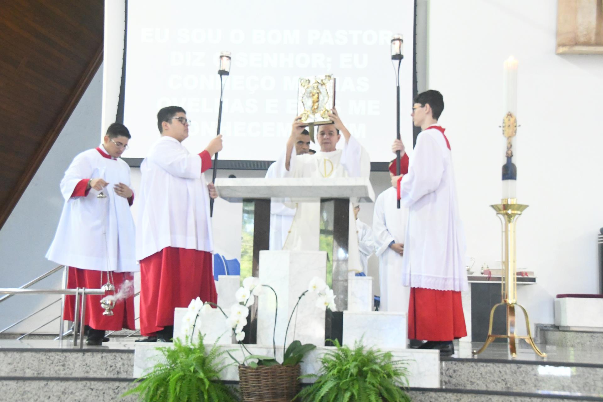 Na homilia, padre Joel destacou a solene alegria que nos trouxe a resposta de Jesus no evangelho: “Eu sou o bom pastor” (Jo 10,11), a resposta de um “Deus que é pastor, que é amor, um Deus cheio de misericórdia para conosco”, ressaltando ainda que Ele é “o pastor e modelo ideal para todos aqueles que O querem seguir”.