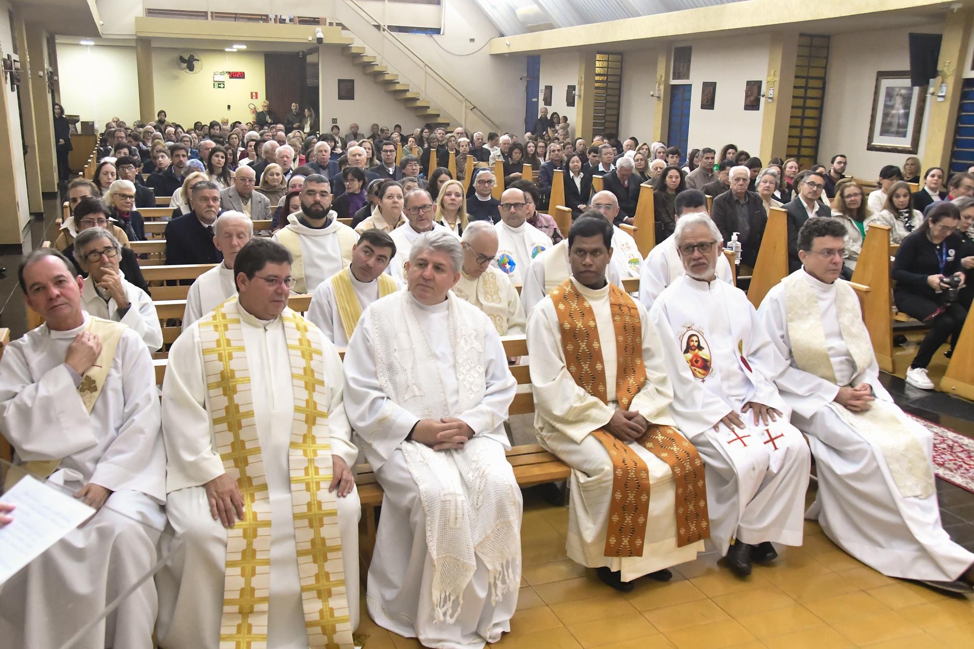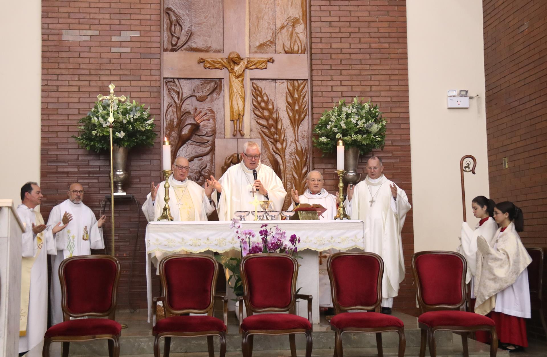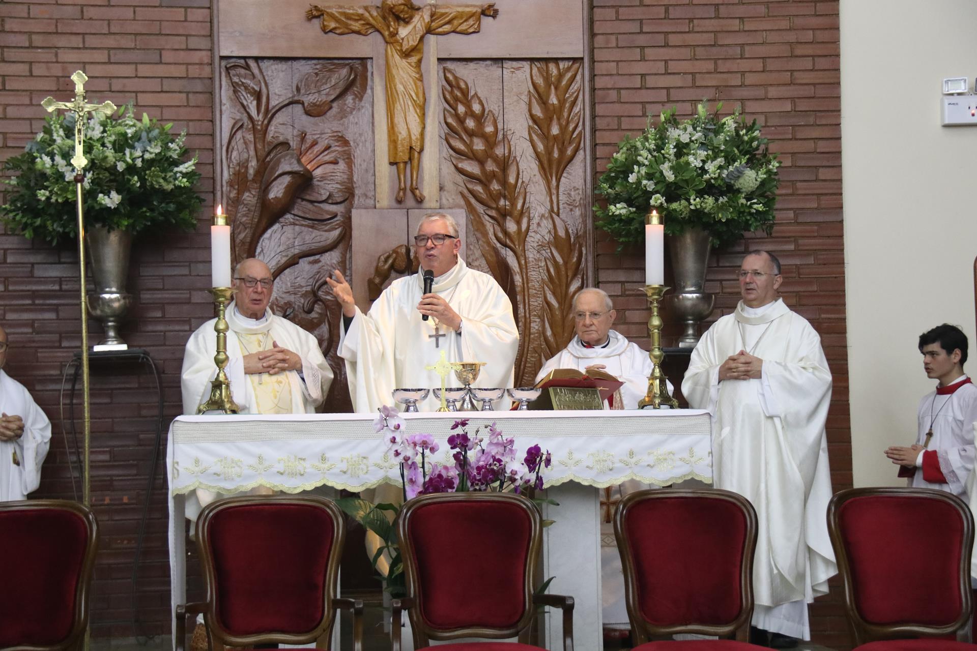 O monsenhor Bernard Gafá, 85, comemorou seus 60 anos de ordenação presbiteral no último dia 4 de julho, em uma celebração eucarística na Paróquia Imaculada Conceição, onde exerce seu ministério sacerdotal. A Missa foi presidida pelo arcebispo dom Geremias Steinmetz e concelebrada por dom Marcos José dos Santos, bispo de Cornélio Procópio (PR), dom Vicente Costa, bispo emérito de Jundiaí (SP), e padres da Arquidiocese de Londrina.