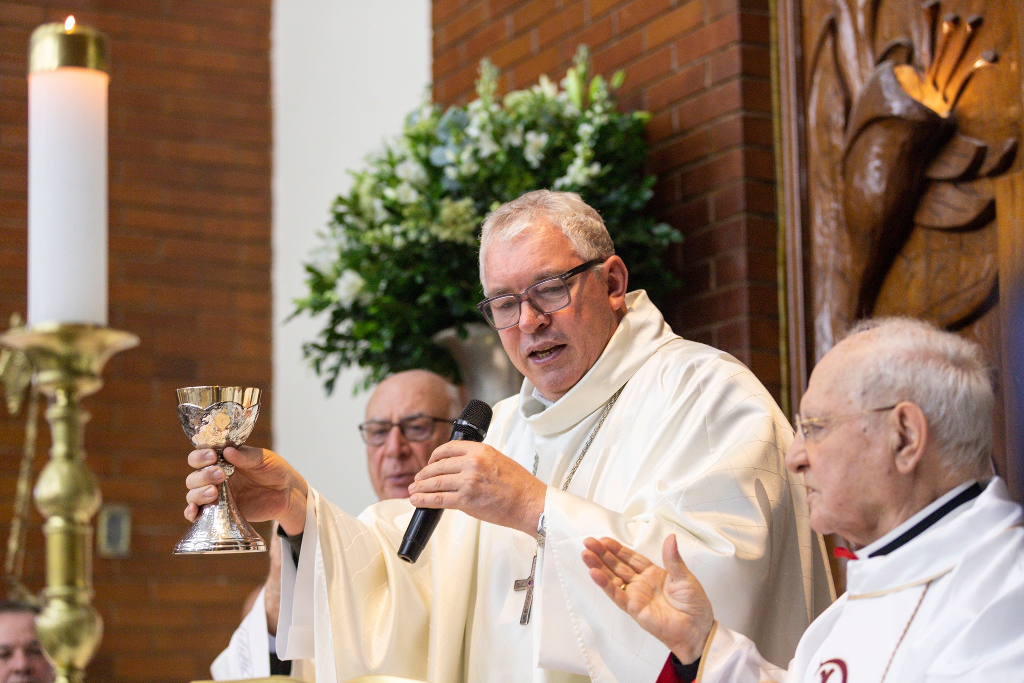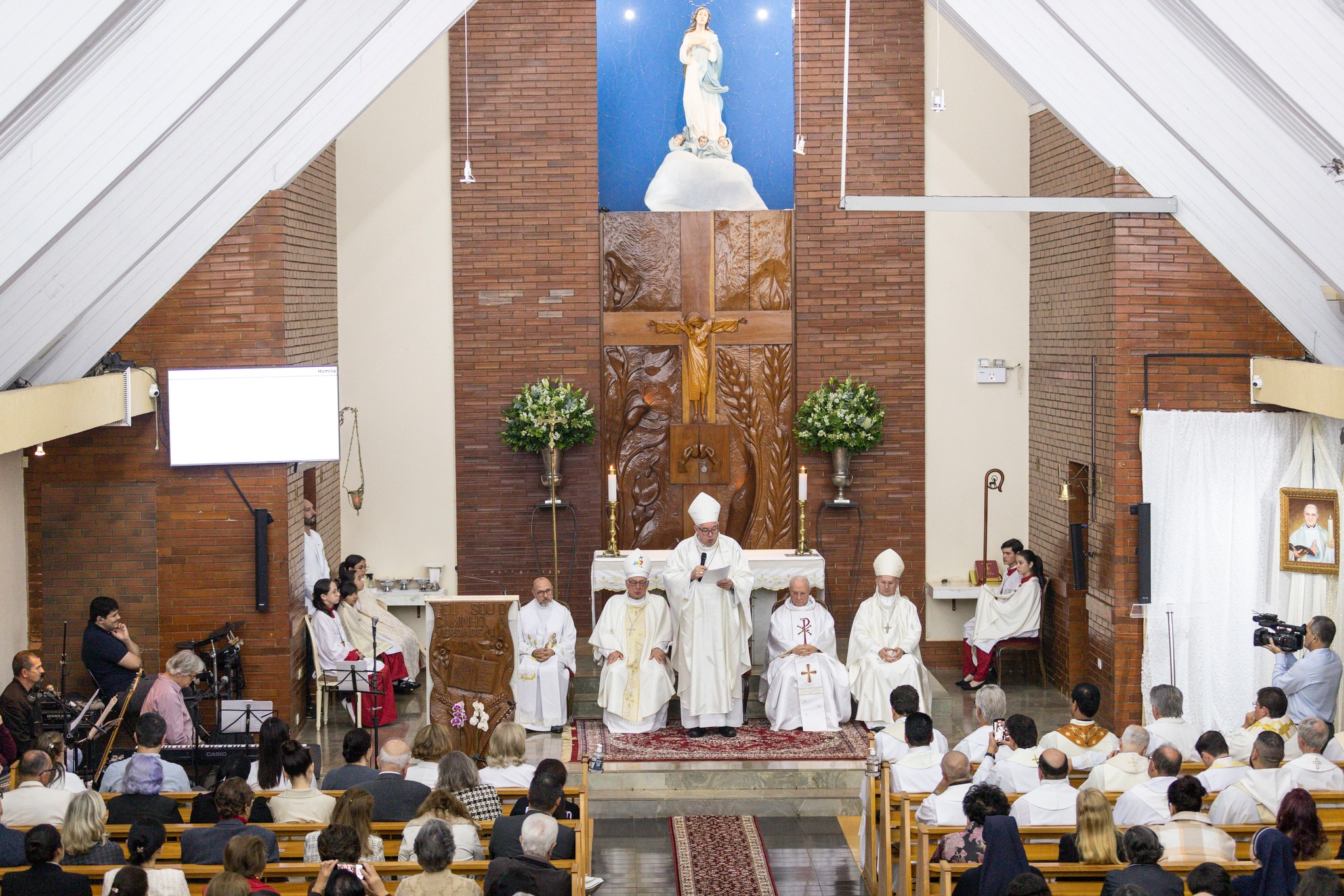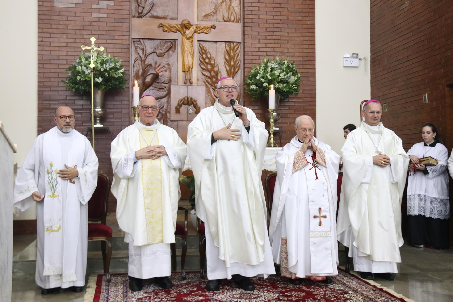 O monsenhor Bernard Gafá, 85, comemorou seus 60 anos de ordenação presbiteral no último dia 4 de julho, em uma celebração eucarística na Paróquia Imaculada Conceição, onde exerce seu ministério sacerdotal. A Missa foi presidida pelo arcebispo dom Geremias Steinmetz e concelebrada por dom Marcos José dos Santos, bispo de Cornélio Procópio (PR), dom Vicente Costa, bispo emérito de Jundiaí (SP), e padres da Arquidiocese de Londrina.