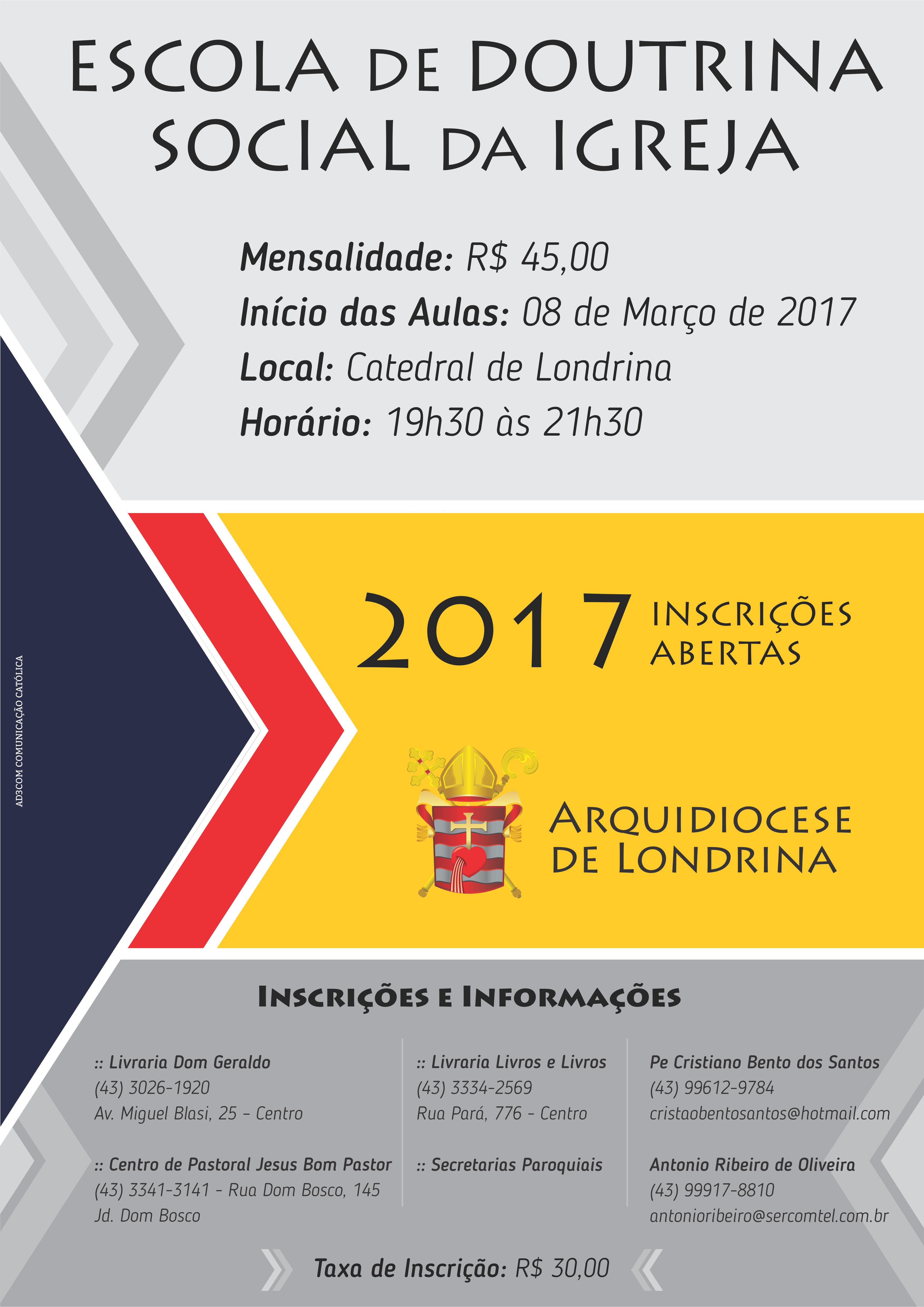 Jornalismo Arquidiocese de Londrina Autor dez 12 ,2016 Inscrições abertas para Escola de Doutrina Social da Igreja A Arquidiocese de Londrina convida Leia Mais
