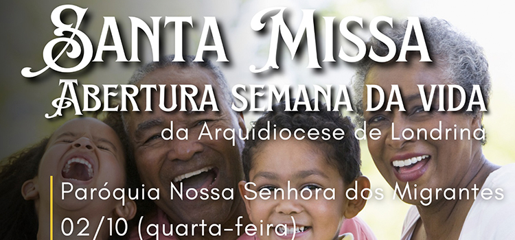 A Arquidiocese de Londrina abre hoje, 2 de outubro, a Semana Nacional da Vida, com a Santa Missa presidida pelo arcebispo dom Geremias Steinmetz na Paróquia Nossa Senhora dos Migrantes, em Cambé, às 19h30. A Missa será concelebrada pelo padre Wilson Marciano, SF, assessor da Pastoral Familiar e pároco da…