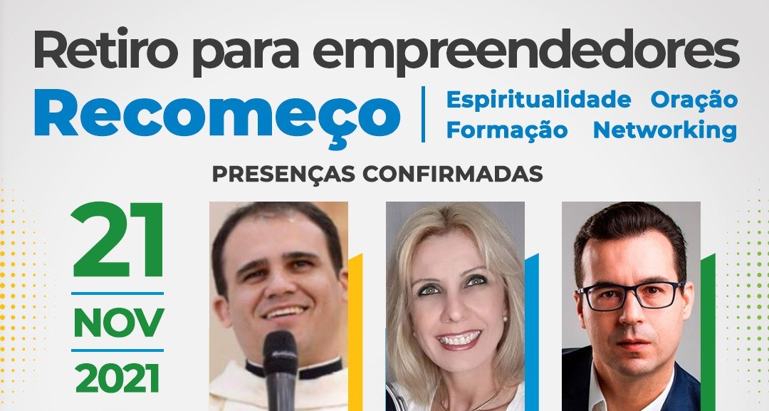 A Pastoral do Empreendedor realiza no dia 21 de novembro das 8h às 16h30 o retiro “Recomeço”, direcionado a empreendedores católicos. À frente do retiro está o padre Ademar Lorrenzzetti, assessor espiritual da pastoral. O evento contará também com uma palestra sobre estratégia com Gustavo Isaías e oração com Denise…